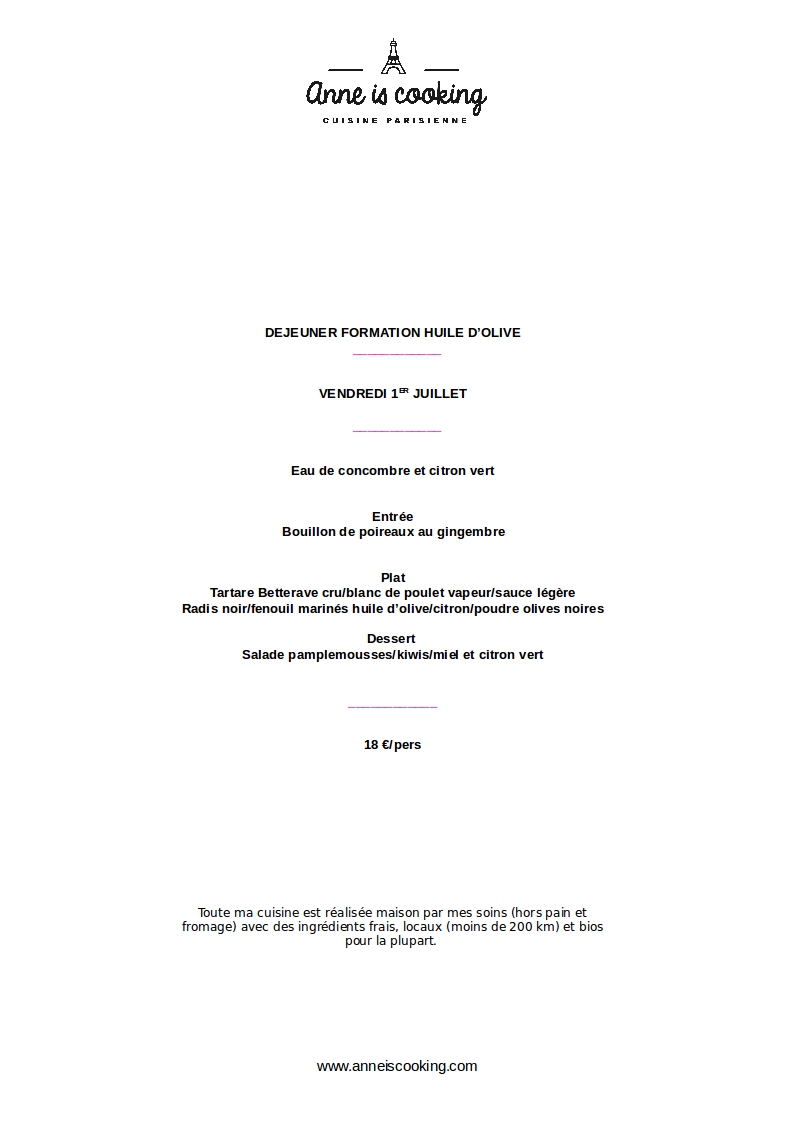 Son prix: 150€/personne (pour la formation) et sur place un déjeuner vous est proposé par @Anneiscooking qui nous concocte spécialement pour la formation un menu Léger et Détox pour 18€.