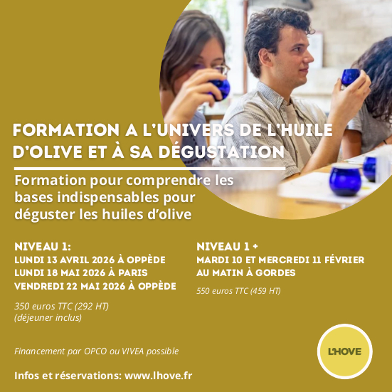 En 2026, L’HOVE poursuit sa mission de transmission et de professionnalisation de la filière oléicole à travers un calendrier de formations mêlant dégustation, technique, terrain et certification professionnelle. Des formats courts pour approfondir un sujet précis, aux parcours certifiants reconnus par France Compétences (RS7126) et éligibles au CPF, ces formations s’adressent aussi bien aux professionnels qu’aux passionnés souhaitant structurer et légitimer leur pratique.