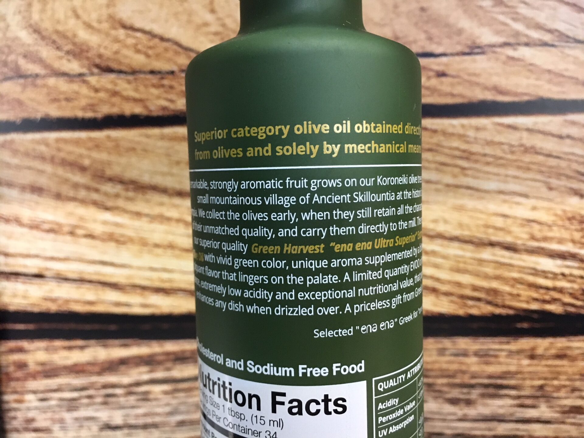 Lors du concours OLIVE d’OR 2018 du SIAL de Montréal nous avons avec mes collègues jury attribué le Prix du Design à l’huile ENA ENA. Tout nous a semblé parfait dans cette bouteille à la fois simple, élégante, pratique et très didactique. En un seul coup d’œil, on peut immédiatement apprécier l’origine, la date de récolte, le type de fruité, la variété. Au verso on lit avec intérêt l’histoire de cette huile, ses caractéristiques nutritionnelles et biochimiques, ainsi que les coordonnées détaillées du producteur ET du moulinier. Traçabilité parfaite et transparence assumée. On attend cela pour toutes nos huiles d’olives, qu’elles soient issues de petits producteurs comme de l’agroalimentaire.