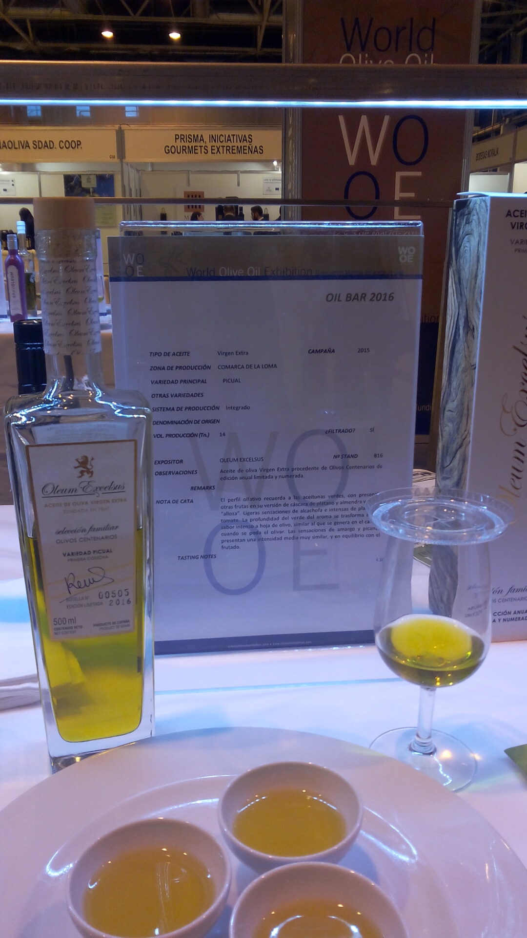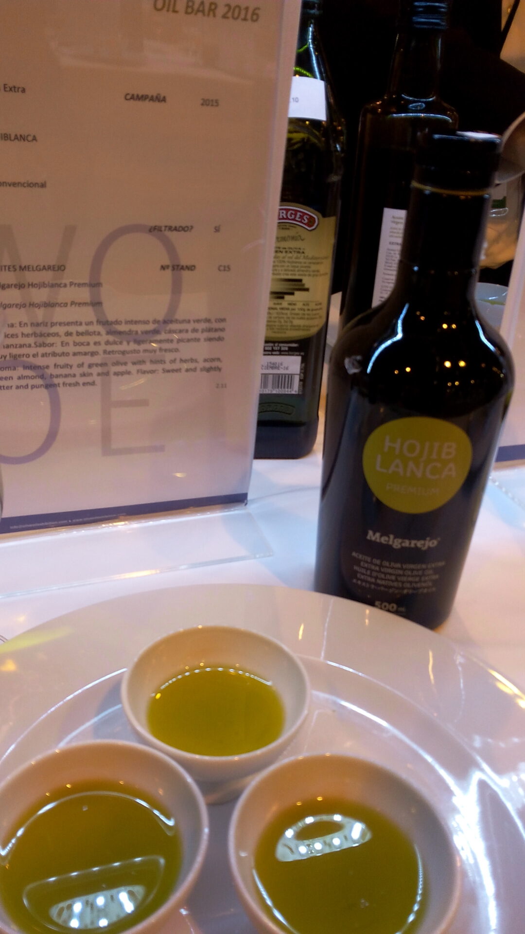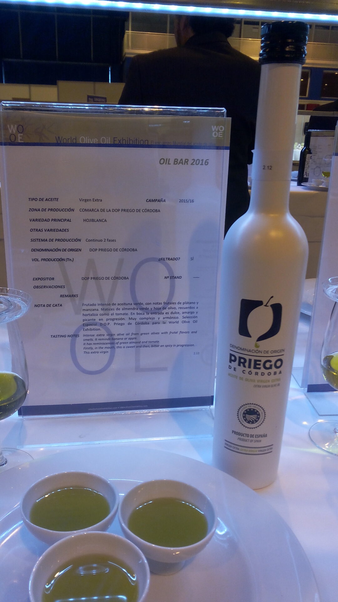 Début mars a eu lieu l’un des rendez-vous de l’année des oléo amateurs, la WOOE, la World olive oil Exhibition de Madrid. Beaucoup d’huiles d’olive sont présentées en libre dégustation et les deux journées sont rythmées par des dégustations guidées, des showcookings et des conférences. J’ai pu assister à la dégustation du Dr Toshiya Tada, directeur de Olive Oil Japan pour les huiles du Japon. Très intéressant de découvrir ce petit pays producteur (170ha), des variétés telles que la mission. Le Japon s’intéresse aux sous-produits de l’olivier comme des noodles à base d’extraits de feuilles, des sodas à base de l’eau de végétation, la feuille comme alimentation animale.