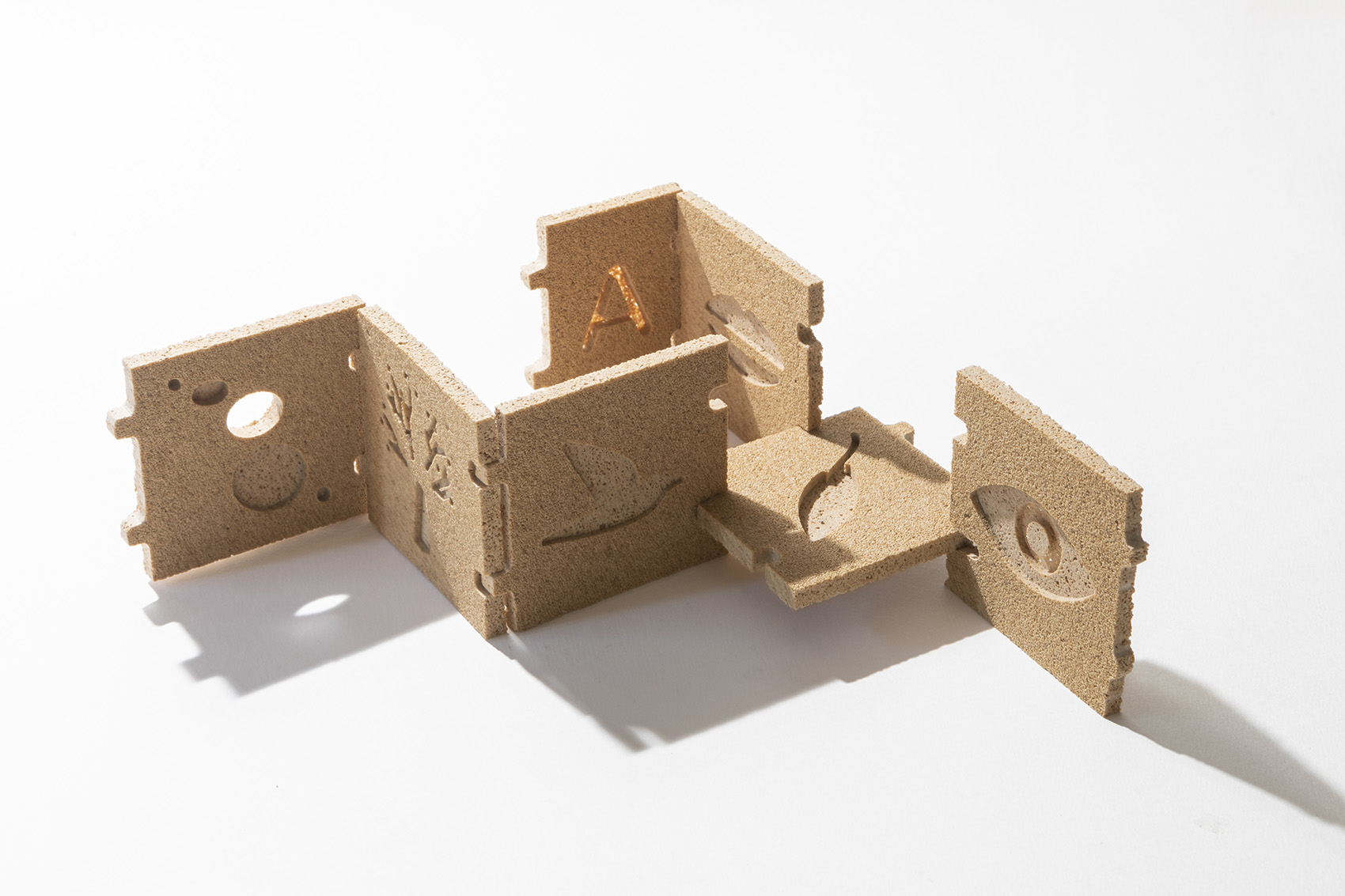 1/ Photo 1, 2 et 3. Re Olivar, Transformative products from olive stones; Une nouvelle vie pour les noyaux d’olive à travers des jouets et des meubles. Des jouets qui peuvent être transformés en bols, des chaises pour plantes et des présentoirs. Ce les trois premières lignes d’application de Re Olivar, un nouveau biomatériau fabriqué à partir de noyaux d’olives de NAIFACTORY_LAB, un espace d’innovation situé à Barcelone, axé sur la création de nouveaux matériaux à base de sous-produits et de déchets de processus de production naturels et techniques.