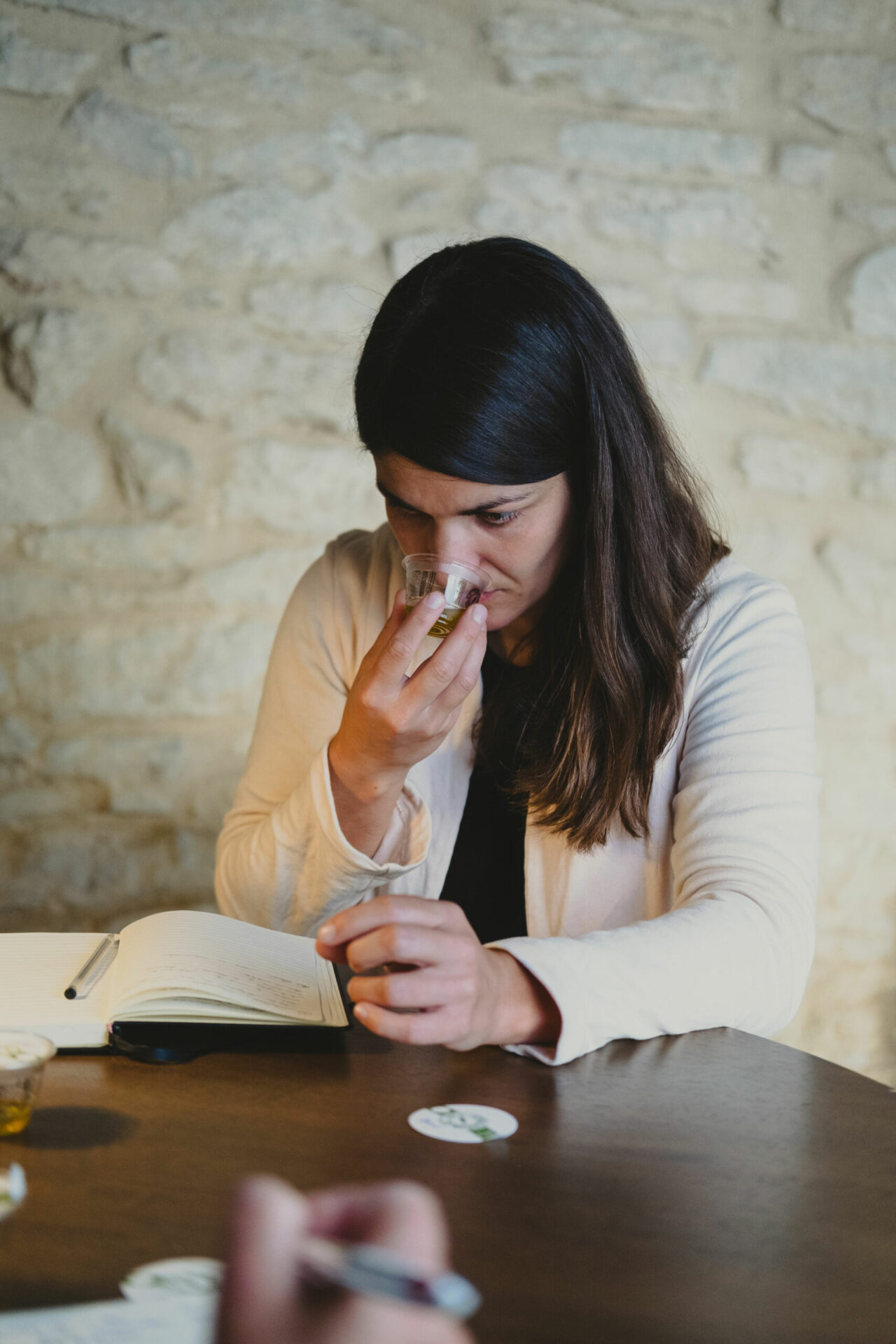 Pour le jus de l’olive, comme pour le vin, le travail d’un oléologue est le même qu’un œnologue, on compose le profil sensoriel d’une huile en fonction des variétés présentes sur le domaine, de l’année (plus ou moins de sécheresse, les intensités du fruité, de l’amertume et du piquant, un déséquilibre à corriger, si on est en AOP, …). Le plus souvent on part d’huiles monovariétales pour ensuite réaliser son assemblage (pour récolter chaque variété selon son moment optimum de récolte). Nous avons aujourd’hui plus de 1700 variétés recensés dans le monde dont 100 juste en France.