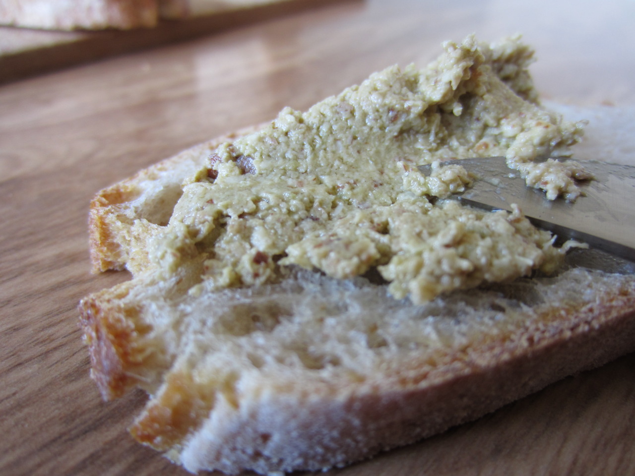 Aujourd’hui on a goûté le pâté aux olives verte et amandes de la Chinata